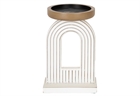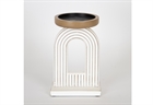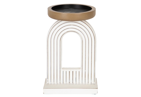 Το κηροπήγιο αποτελεί την κατάλληλη επιλογή για να προσθέσεις μια μοντέρνα και κομψή πινελιά στον χώρο σου. Η λευκή απόχρωσή του, σε συνδυασμό με τις χρυσές λεπτομέρειες, προσδίδει μια πολυτελή αίσθηση, ενώ ταυτόχρονα συνδυάζεται αρμονικά με διάφορα στιλ διακόσμησης που μπορεί να έχεις. Παράλληλα, η μεταλλική βάση του σου εγγυάται ανθεκτικότητα και σταθερότητα, εξασφαλίζοντας έτσι ότι το κερί θα παραμείνει ακλόνητο κατά την διάρκεια της καύσης του. Το άνοιγμα του στην κορυφή είναι αρκετά ευρύ ώστε να φιλοξενήσει διάφορα μεγέθη κεριών. Ακόμη, είναι ιδανικό για τοποθέτηση σε τραπέζι, σε ράφια αλλά και όπου αλλού επιθυμείς εσύ, φτιάχνοντας έτσι μια ζεστή ατμόσφαιρα. Τέλος, με ύψος 22cm, είναι αρκετά ψηλό ώστε να δημιουργήσει ένα εντυπωσιακό αποτέλεσμα.