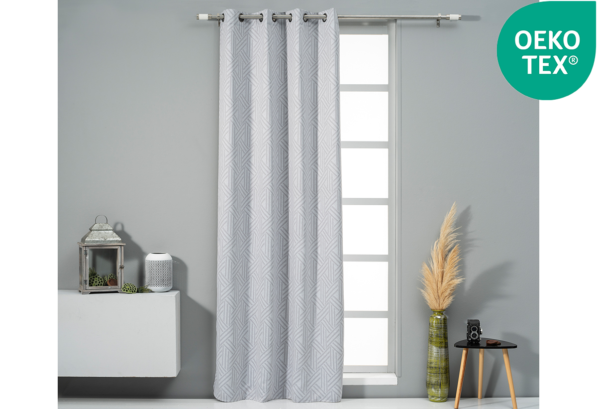 Κουρτίνα Easy Home Kayla Blackout 260x140cm Γκρι Εμπριμέ με Τρουκς