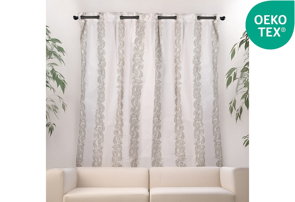 Η κουρτίνα είναι πιστοποιημένη με το πρότυπο Oeko-Tex, που εγγυάται ότι τα υλικά της δεν περιέχουν επιβλαβείς ουσίες και είναι ασφαλή για την υγεία. Αυτό το διεθνώς αναγνωρισμένο σήμα ποιότητας εξασφαλίζει ότι η κουρτίνα έχει ελεγχθεί σε αυστηρές συνθήκες και πληροί τα υψηλότερα πρότυπα για την ασφάλεια των καταναλωτών. Με την επιλογή ενός προϊόντος με πιστοποίηση Oeko-Tex, επιλέγεις όχι μόνο ποιότητα, αλλά και φροντίδα για την υγεία σου και το περιβάλλον.