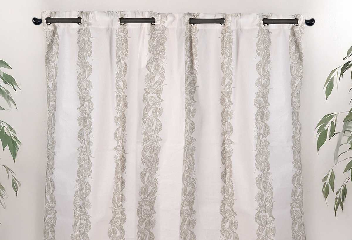 Κουρτίνα με minimal print που απεικονίζει φύλλα της ζούγκλας που σχηματίζουν κάθετες ρίγες σε λευκό και greige χρώμα. Οι ρίγες είναι φαρδιές και εναλλάσσονται σε σταθερό μοτίβο, προσδίδοντας έναν καθαρό και συμμετρικό χαρακτήρα στο ύφασμα και παράλληλα προσδίδουν την boho διάθεση που αποπνέουν τα φύλλα. Το ύφος της κουρτίνας ακολουθεί μίνιμαλ αισθητική με χαλαρές αντιθέσεις στα χρώματα για να ταιριάζουν σε όλους τους χώρους του σπιτιού. Κατασκευασμένη από ελαφρύ βαμβακερό ύφασμα.