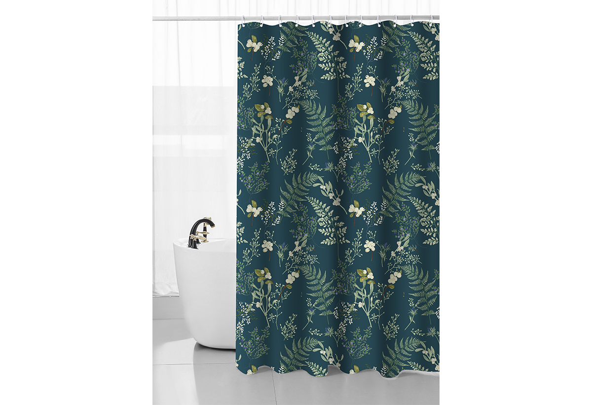 Κουρτίνα Μπάνιου Ionion Dark Fern Υφασμάτινη 180x180cm