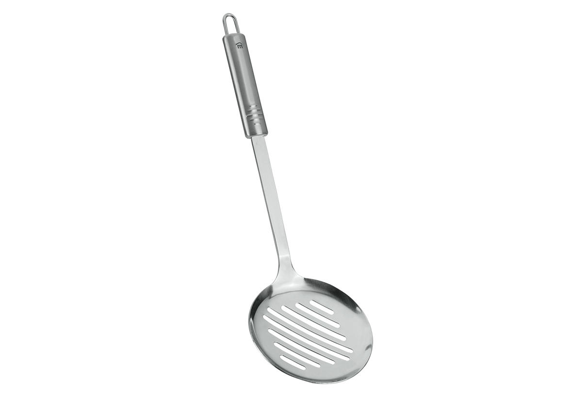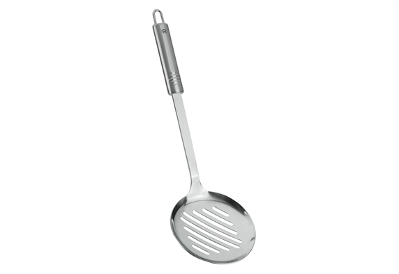 Η τρυπητή κουτάλα είναι ιδανική για να σου επιτρέπει να στραγγίζεις με ευκολία λαχανικά, ζυμαρικά ή τηγανητά, διατηρώντας μόνο το φαγητό και απομακρύνοντας το περιττό υγρό ή λάδι. Είναι κατασκευασμένη από υψηλής ποιότητας ανοξείδωτο ατσάλι, προσφέροντας αντοχή στη χρήση και ανθεκτικότητα στον χρόνο.