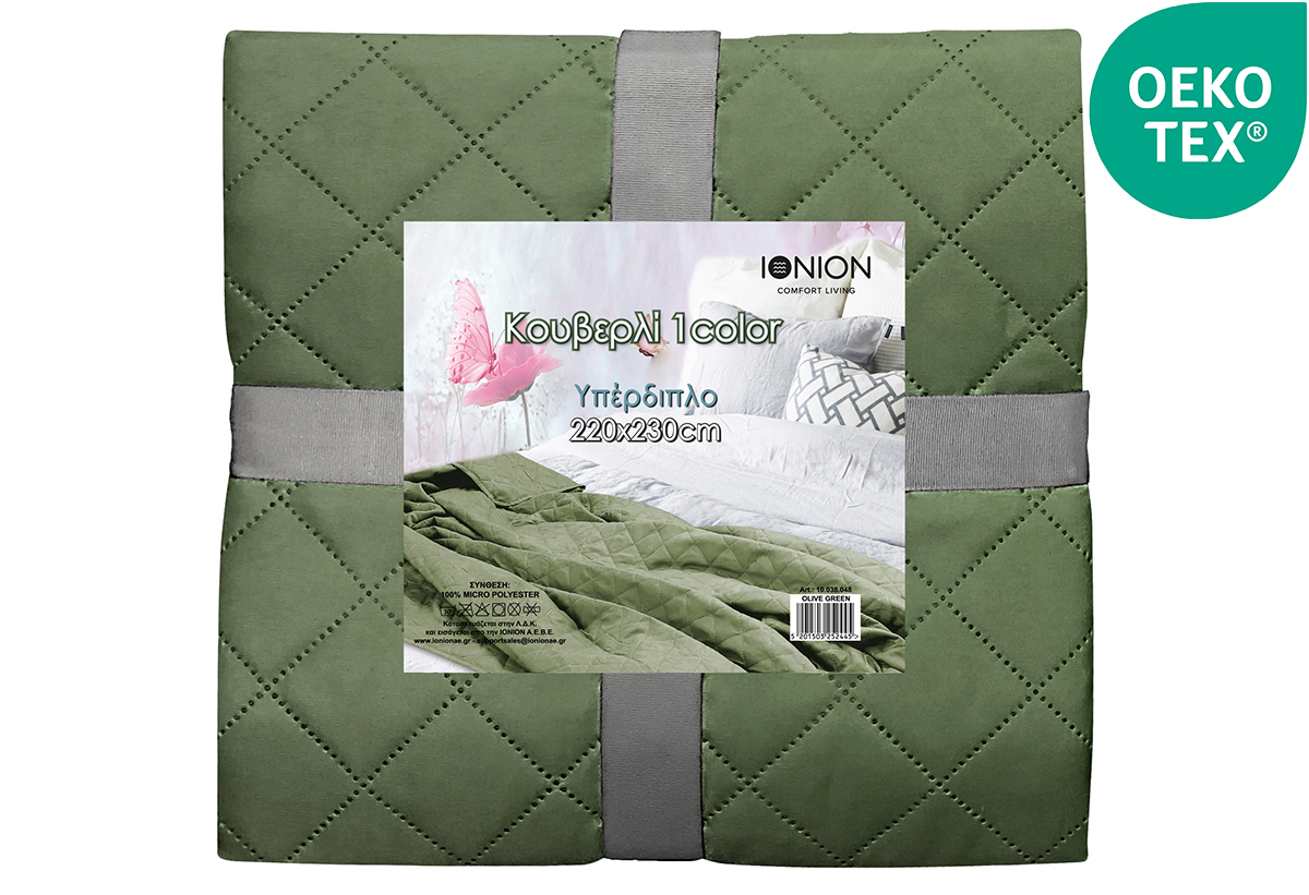 Κουβερλί Υπέρδιπλο Ionion Ultrasonic Olive Green 230x220cm