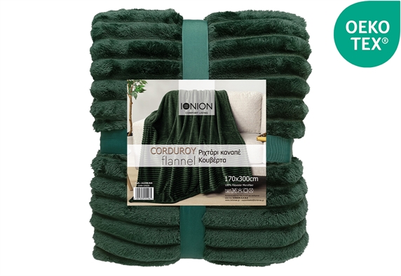 Κουβέρτα Flannel Corduroy Διπλή Ionion Dark Green 300x170cm