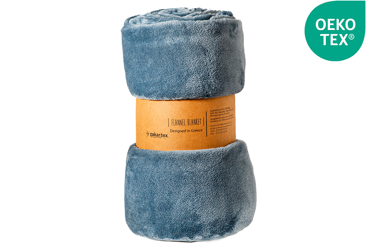 Κουβέρτα Flannel Διπλή Zakartex 220x200cm Μπλε
