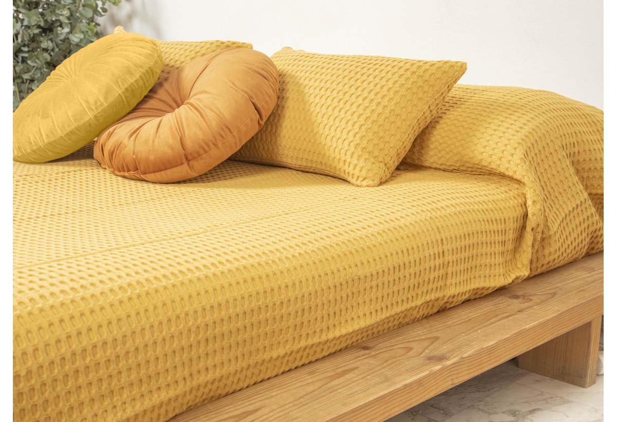 Κουβέρτα Πικέ Διπλή Easy Home Primavera Μουσταρδί 240x220cm