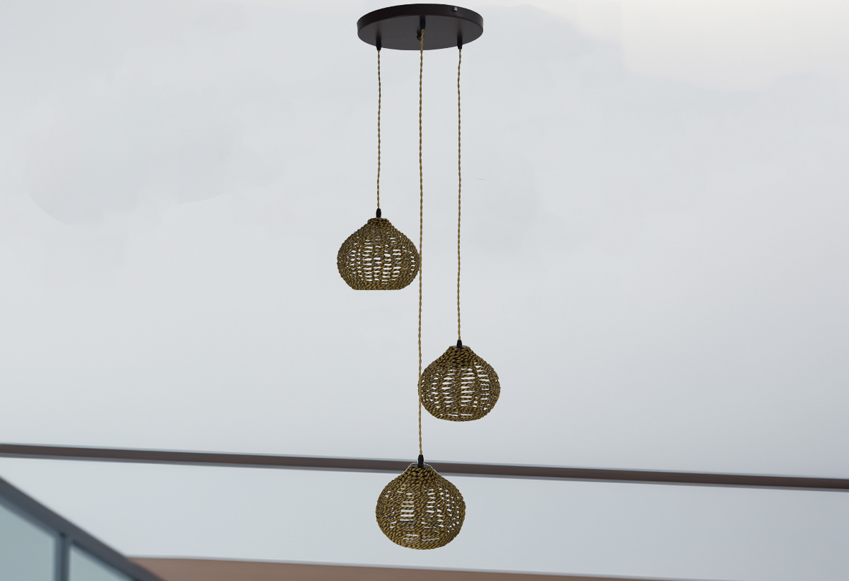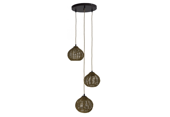 Κρεμαστό Φωτιστικό Gallis Tzini 3-Φωτο με Σχοινί Μπεζ/Καφέ
