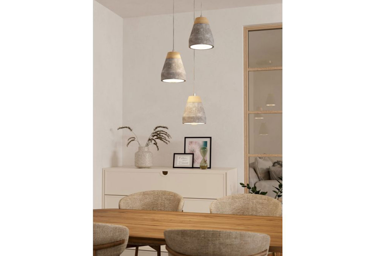 Δημιούργησε μία σύγχρονη και εντυπωσιακή ατμόσφαιρα με το κρεμαστό φωτιστικό Tarega, συνδυάζοντας μοναδικά το μίνιμαλ design με τον μοντέρνο φωτισμό. Αναβάθμισε το χώρο σου με στιλ, προσφέροντας την ιδανική ισορροπία φωτός και κομψότητας. Τα καπέλα του φωτιστικού είναι από ξύλο και τσιμέντο, αποπνέοντας έναν αέρα μοντέρνας αισθητικής. Η σύγχρονη τεχνοτροπία το καθιστά ιδανικό για να ανανεώσεις κάθε χώρο, προσφέροντας μία industrial αίσθηση που εντυπωσιάζει και αναδεικνύει το στιλ σου. Η διάμετρος κάθε καπέλου είναι 25cm.