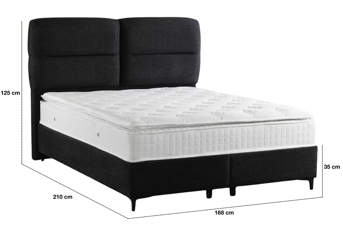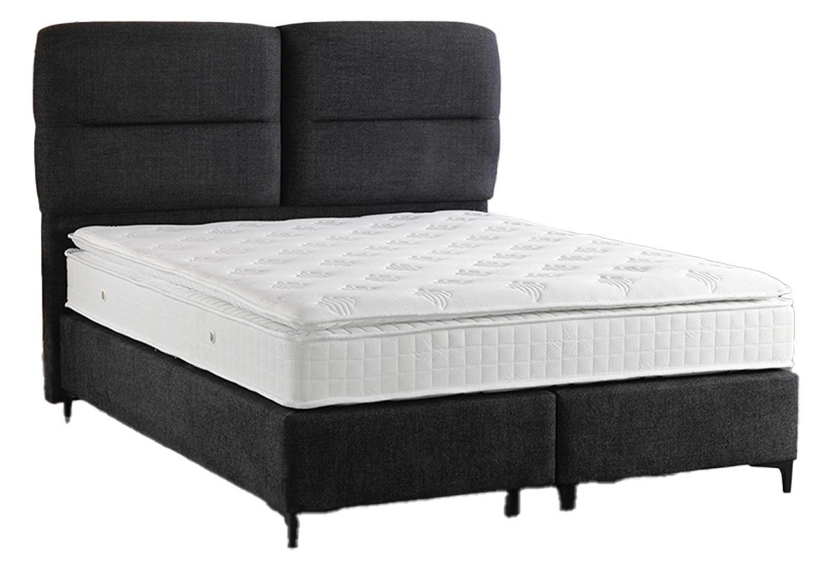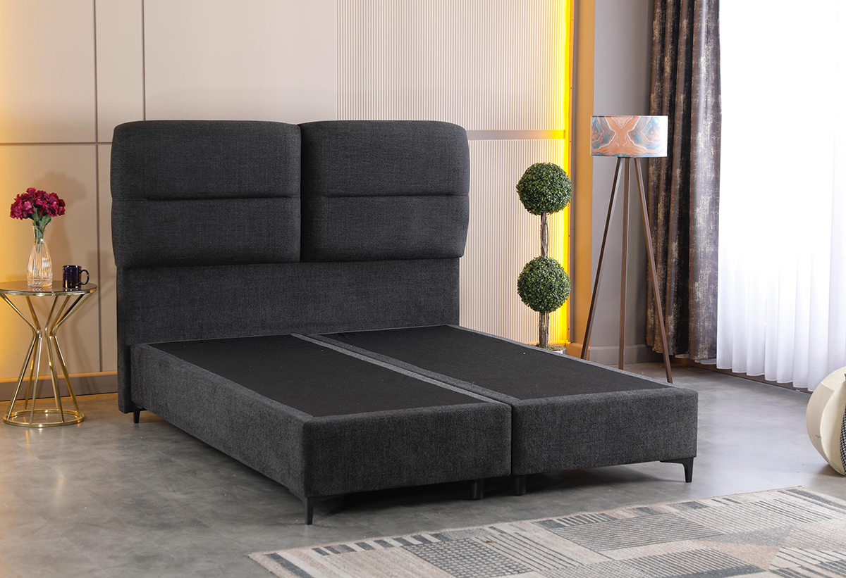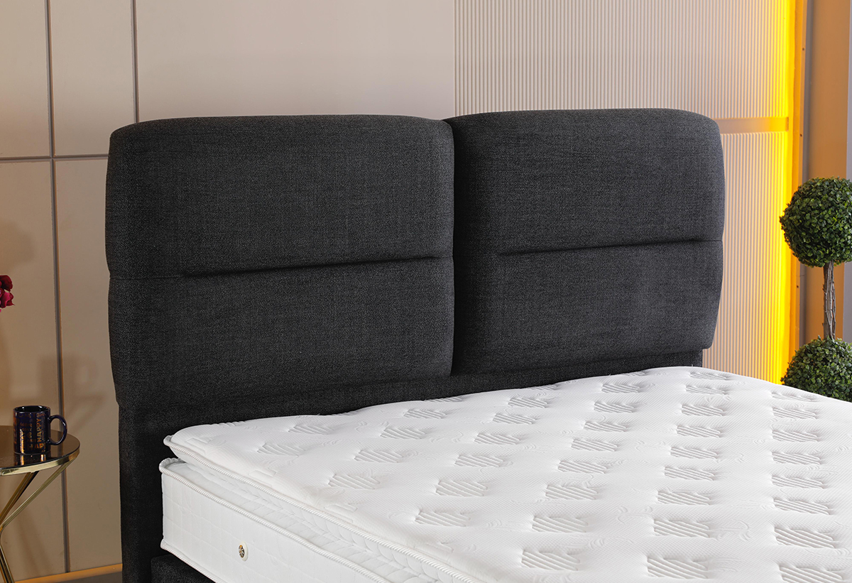 Το υψηλό κεφαλάρι προσφέρει στήριξη και ξεκούραση, ενώ ο σύγχρονος σχεδιασμός ταιριάζει σε κάθε διακόσμηση. Η σκούρα γκρι απόχρωση προσδίδει στιβαρότητα και κομψότητα, καθιστώντας το κρεβάτι το κεντρικό στοιχείο του υπνοδωματίου.