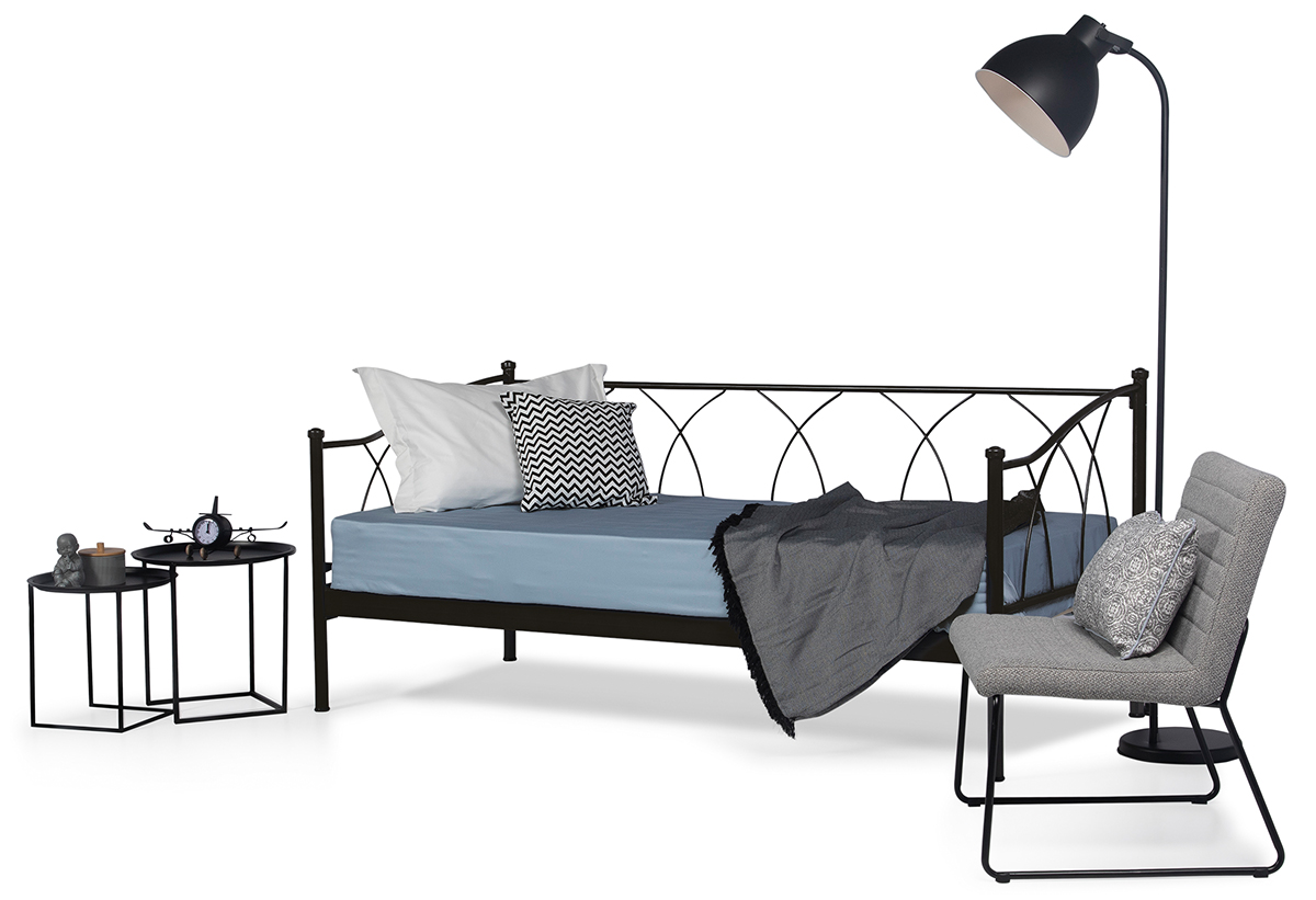 Κρεβάτι Επισκέπτη KS Kouppas Glamour Μαύρο με Στρώμα 200x90cm
