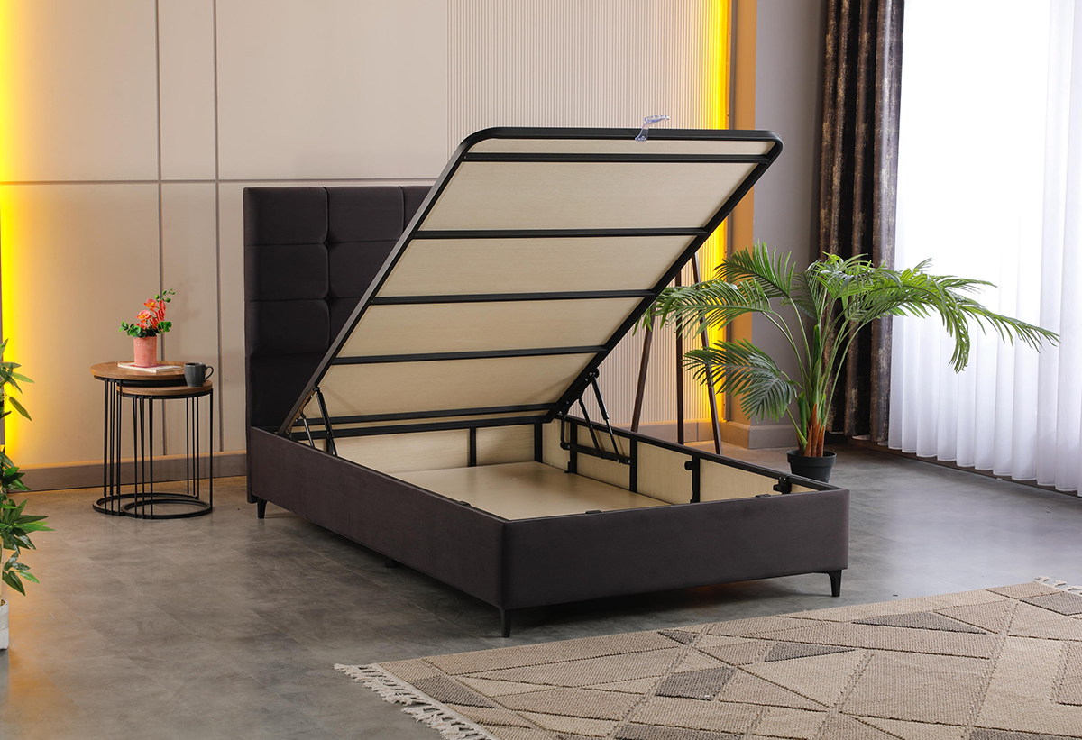 Κρεβάτι Ημίδιπλο Interium Monaco με Αποθηκευτικό Χώρο Γκρι για Στρώμα 200x120cm