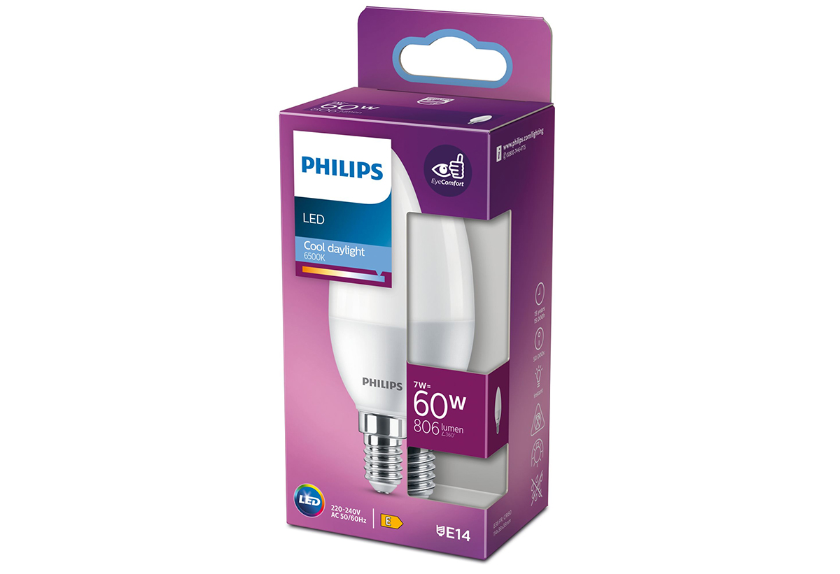 Λάμπα LED Philips B38 Κερί E14 60W Ψυχρό Λευκό