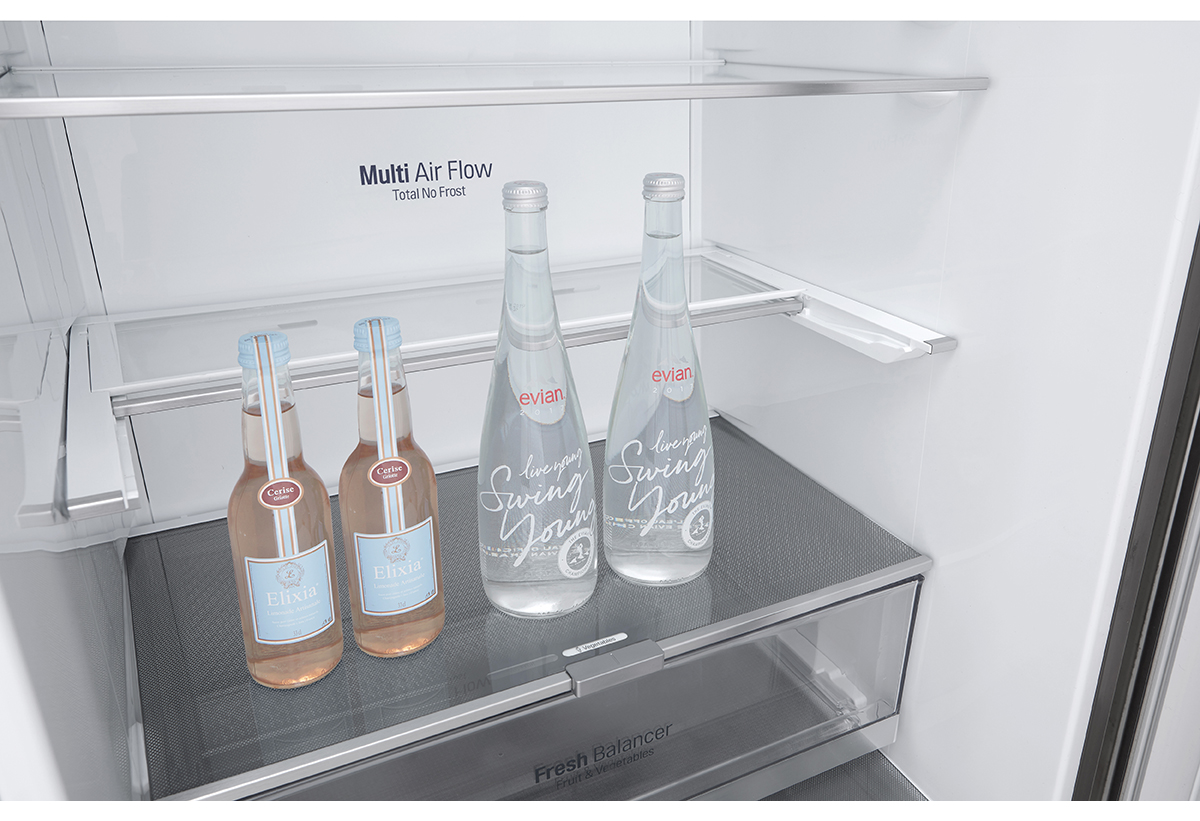 Είναι εξοπλισμένο με Full No Frost τύπο ψύξης και τεχνολογίες SmartThinQ, LINEARCooling, DoorCooling+ όπως επίσης και δυνατότητα αλλαγής φοράς πόρτας, βρυσάκι νερού και Multi Air Flow μηχανισμό για καλύτερη ροή αέρα στο εσωτερικό.