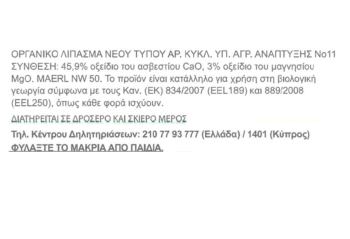 Λίπασμα Στερεό Ασβέστιο-Μαγνήσιο για Λαχανικά Gardin Bio 1kg
