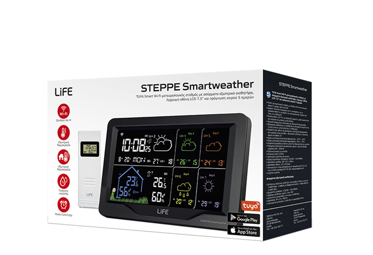 Μετεωρολογικός Σταθμός με Ασύρματο Εξωτερικό Αισθητήρα Life Steppe Smartweather Tuya