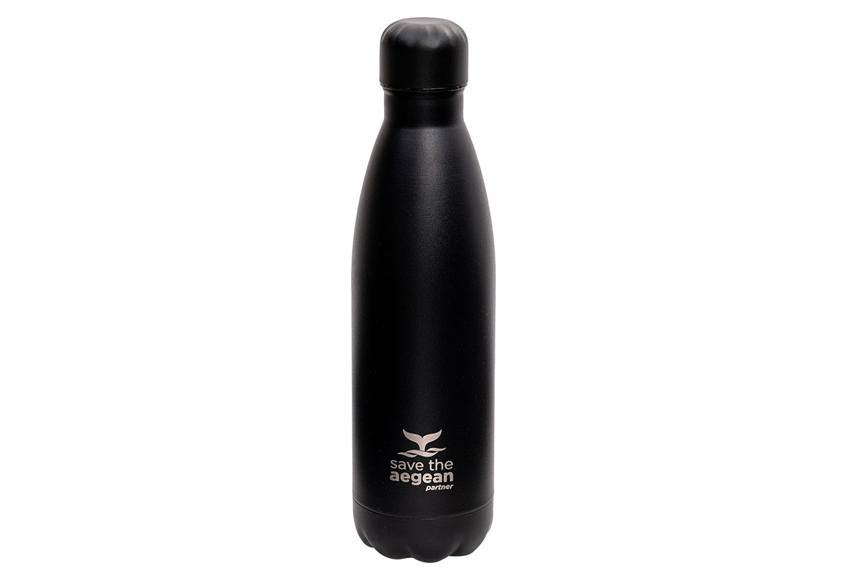 Το μπουκάλι θερμός Save the Aegean, με χωρητικότητα 500 ml, είναι ένα κομψό μπουκάλι σε μαύρη απόχρωση, κατασκευασμένο να κρατάει τα ροφήματά σου στη θερμοκρασία που επιθυμείς, παγωμένα για έως 24 ώρες ή ζεστά για έως 12 ώρες.