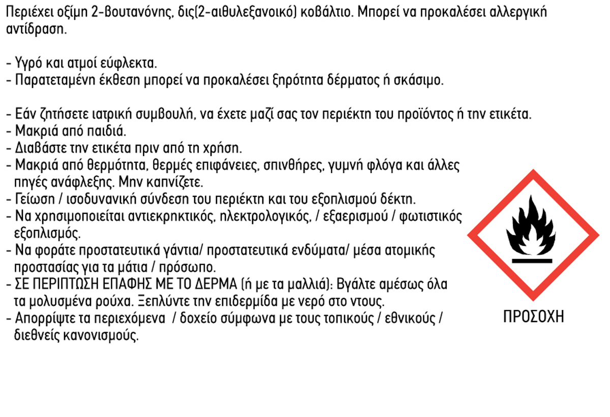 Το βερνίκι είναι στεγνό στην αφή μετά από 2-3 ώρες. Ανάλογα με τις συνθήκες εφαρμογής, ο χρόνος μπορεί να διαφέρει.