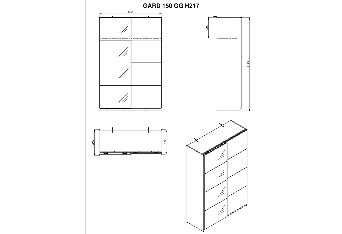 Ντουλάπα Ρούχων Δίφυλλη Συρόμενη Forma Ideale Gard M146xΠ61xY218cm Natural