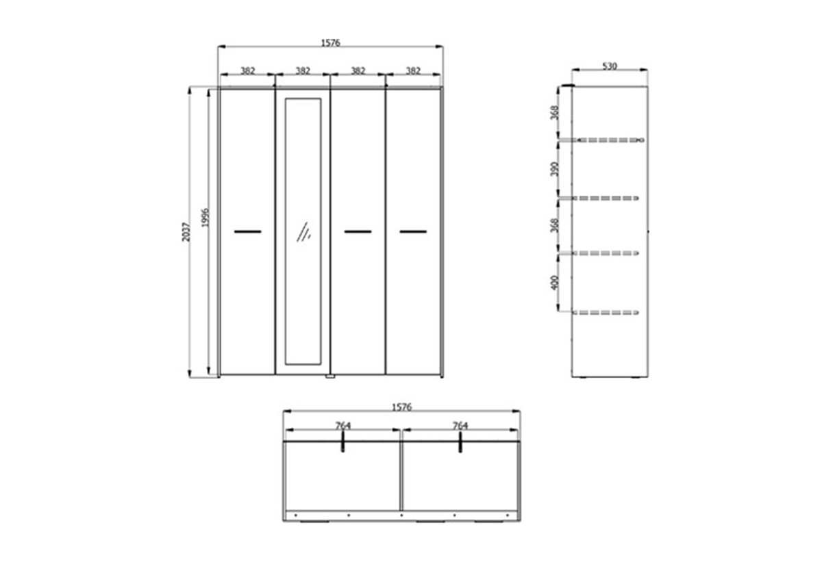 Ντουλάπα Ρούχων Τετράφυλλη με Καθρέπτη Forma Ideale Varadero