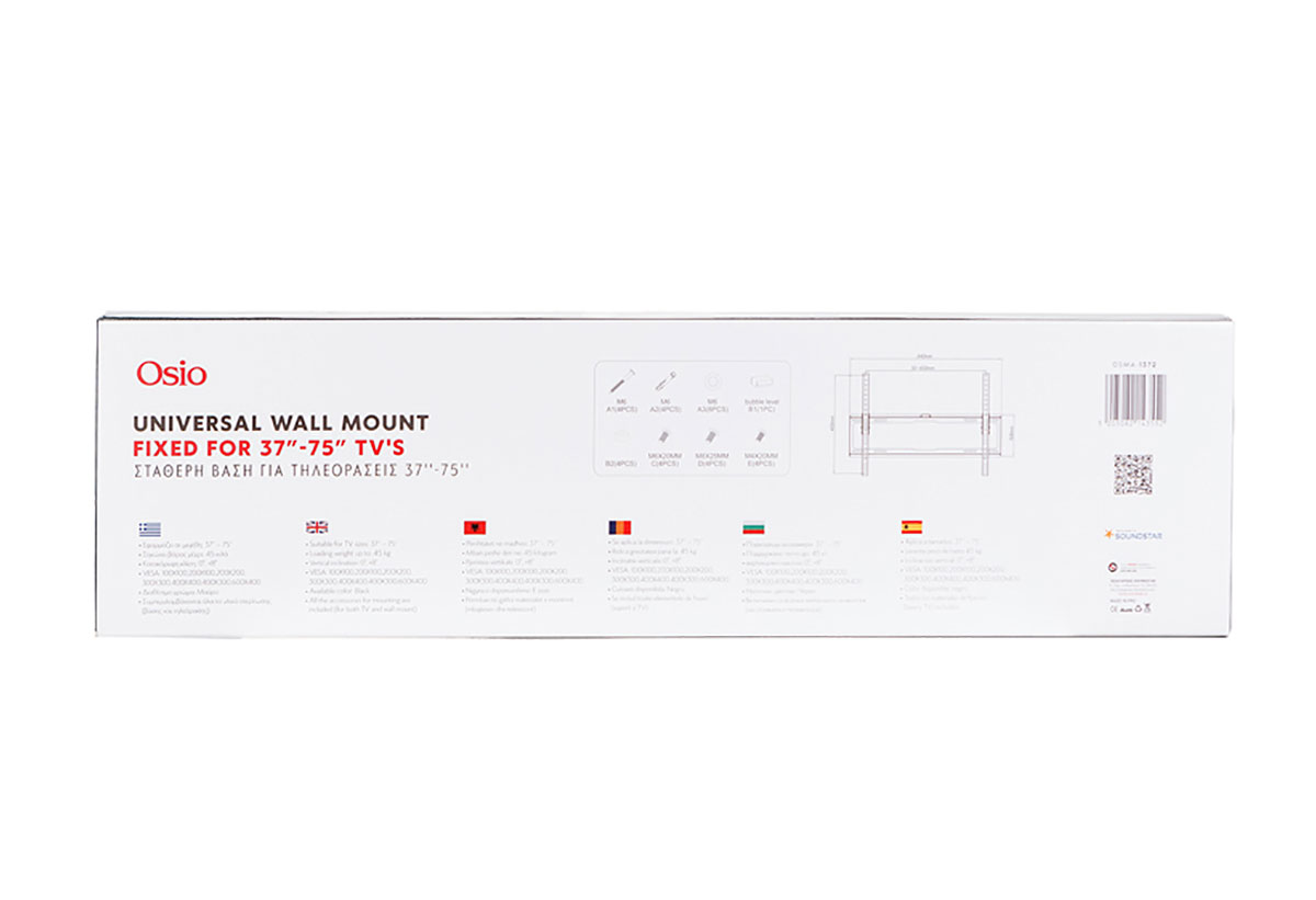 Osio OSM-1372 Βάση Τηλεόρασης Τοίχου 37-75" έως 45kg