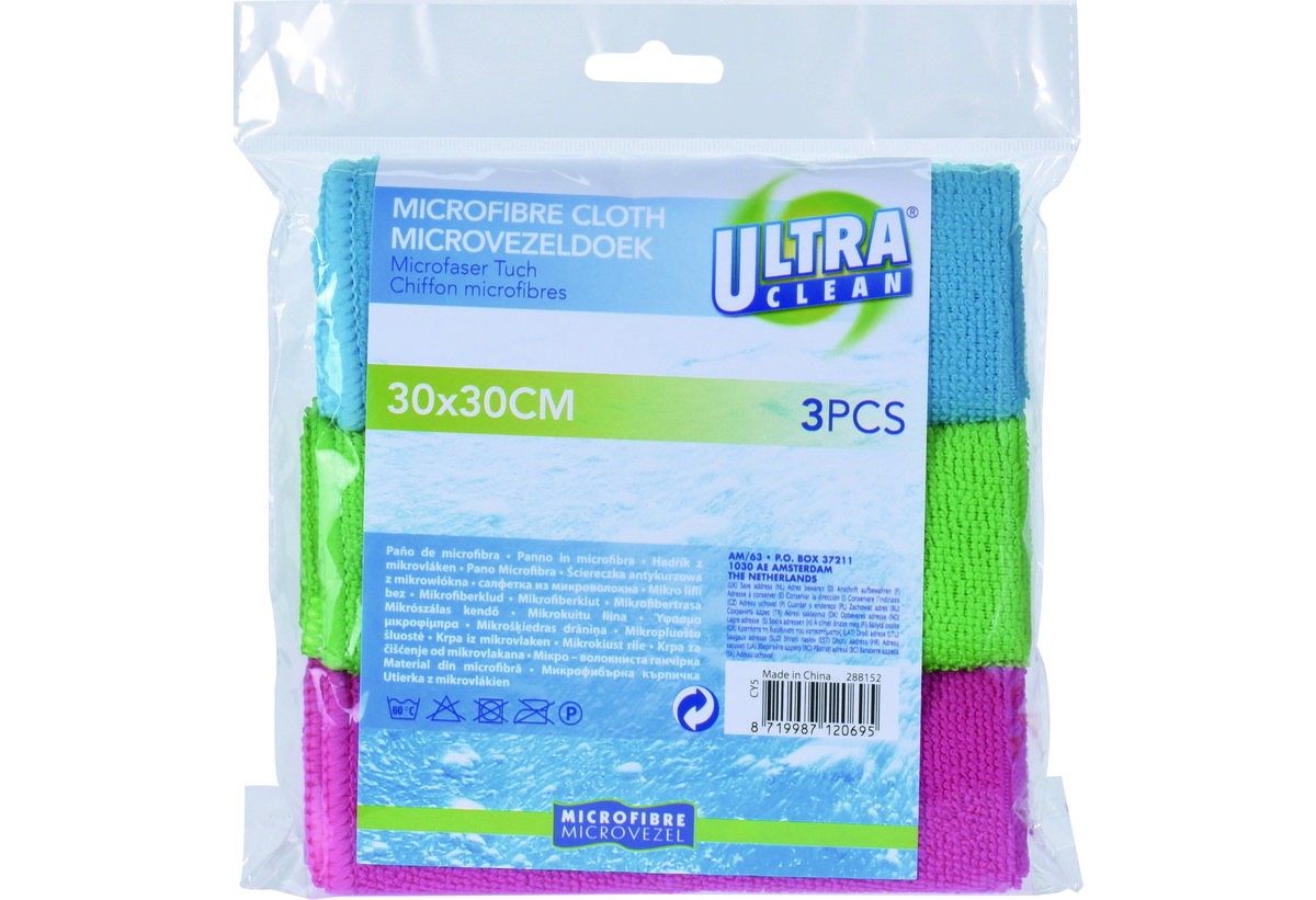 Πανί καθαρισμού από μικροίνες, σε διάφορες αποχρώσεις, διαστάσεις (ΜxΥ): 30x30 cm, σε συσκευασία 3 τεμαχίων.