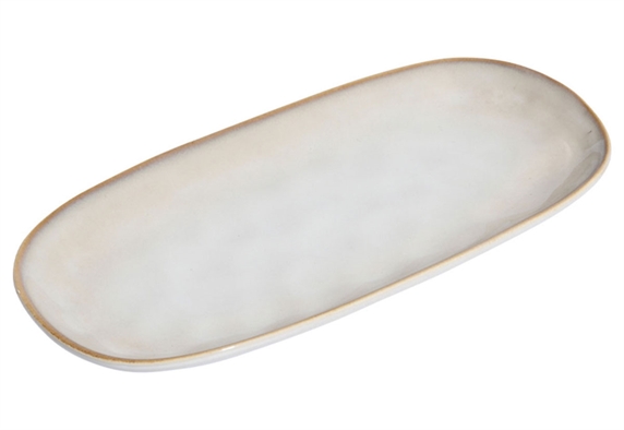 Ανακάλυψε την εξαιρετική προσθήκη στη συλλογή σου με την πιατέλα Vignette. Η πήλινη κατασκευή της εξασφαλίζει ανθεκτικότητα και μακροχρόνια χρήση. Η ιβουάρ απόχρωση, σε συνδυασμό με τη σκούρα χρυσή γραμμή περιμετρικά στο χείλος της, προσθέτει μια κλασική πινελιά στην καθημερινότητά σου. Επιπλέον, είναι κατάλληλη τόσο για πλυντήριο πιάτων όσο και για πλύσιμο στο χέρι, διευκολύνοντας τον καθαρισμό της. Με διαστάσεις Μ31,3xΠ15 εκατοστά, είναι ιδανική για να σερβίρεις το φαγητό της επιλογής σου, στο οικογενειακό τραπέζι με τα αγαπημένα σου πρόσωπα, ώστε να απολαμβάνεις κάθε γεύμα με στιλ και άνεση.