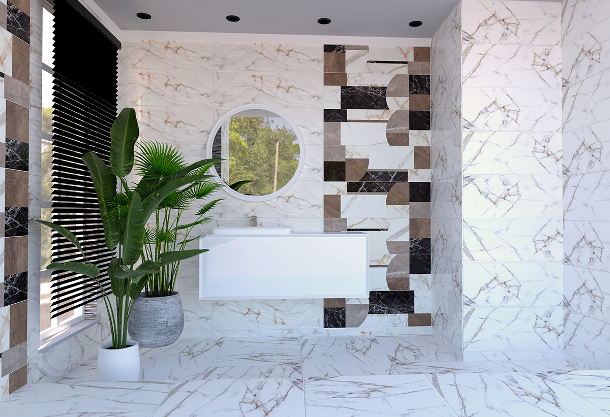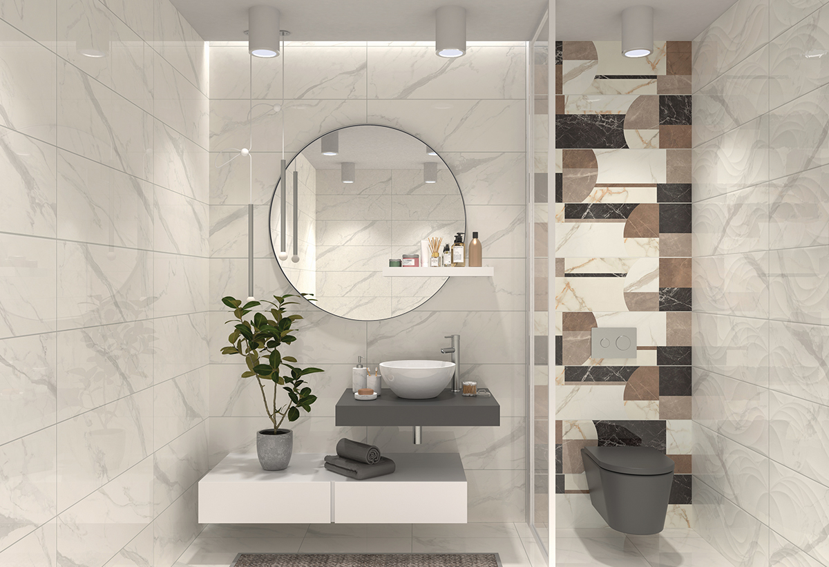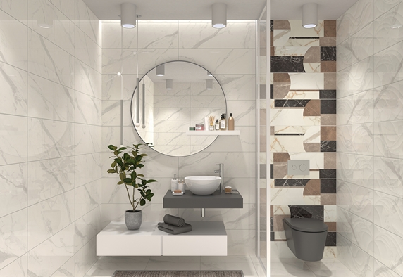 Απεικονίζεται το πλακάκι τοποθετημένο σε ένα μπάνιο.
