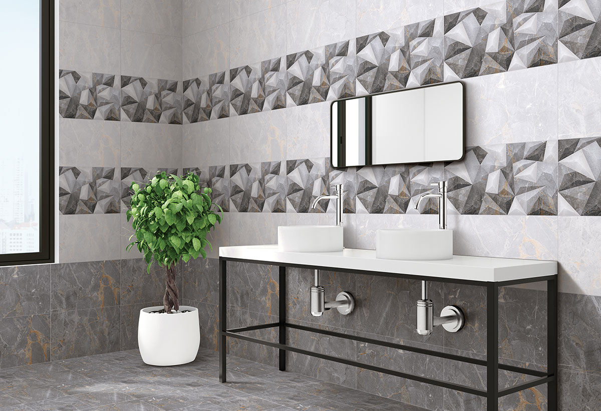 Απεικονίζεται το πλακάκι τοποθετημένο σε έναν τοίχο μπάνιου.