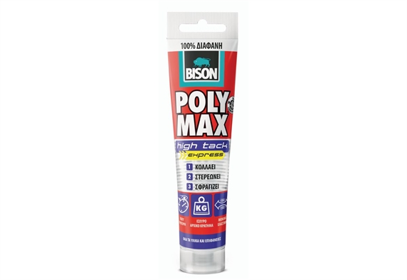 Κόλλα κατασκευών Bison Poly Max Crystal Express σε συσκευασία 115 gr, που λειτουργεί σαν στεγανοποιητικό υλικό γενικής χρήσης. Διάφανη σαν κρύσταλλο με πολύ γρήγορη ωρίμανση και κατάλληλη για γυαλί, φυσική πέτρα, ξύλο, μέταλλα, πολλών συνθετικών υλικών και αφρού πολυστερίνης.
