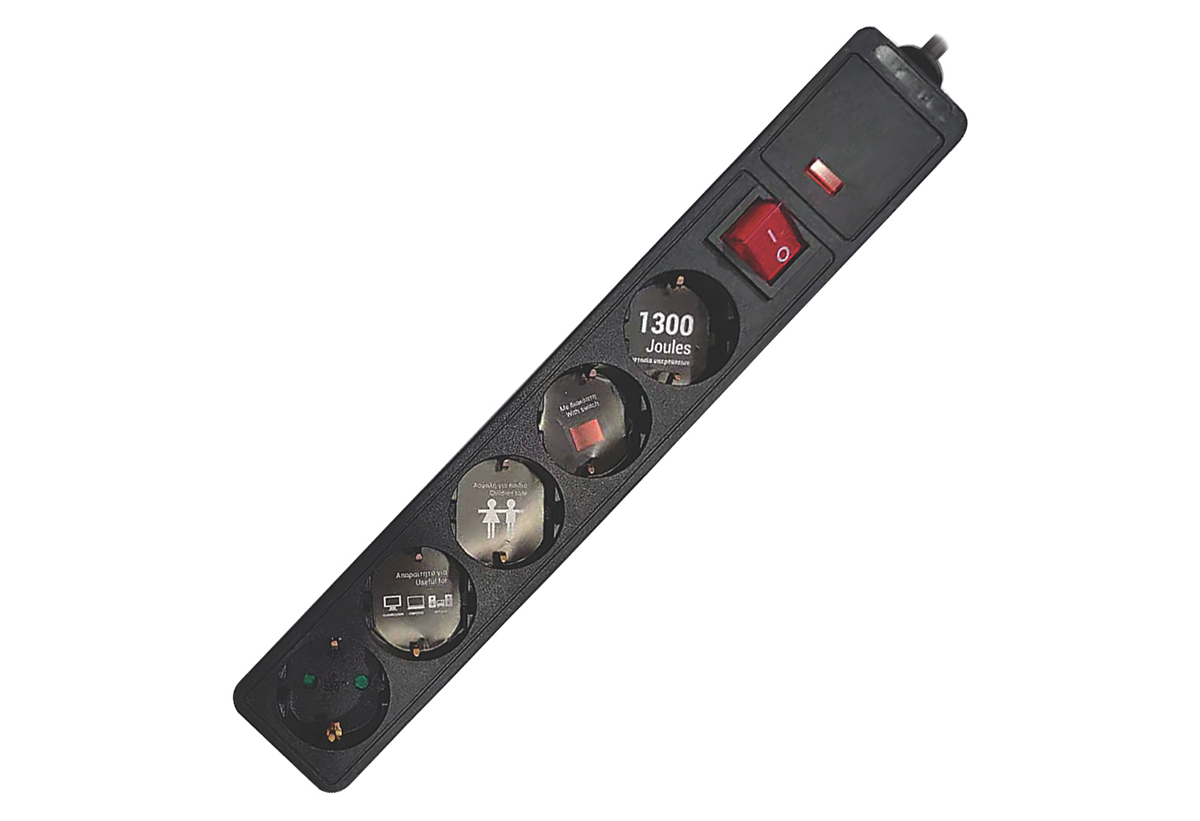 Πολύπριζο Υπέρτασης 5 Θέσεων Eurolamp με Καλώδιο 1.5m & Διακόπτη