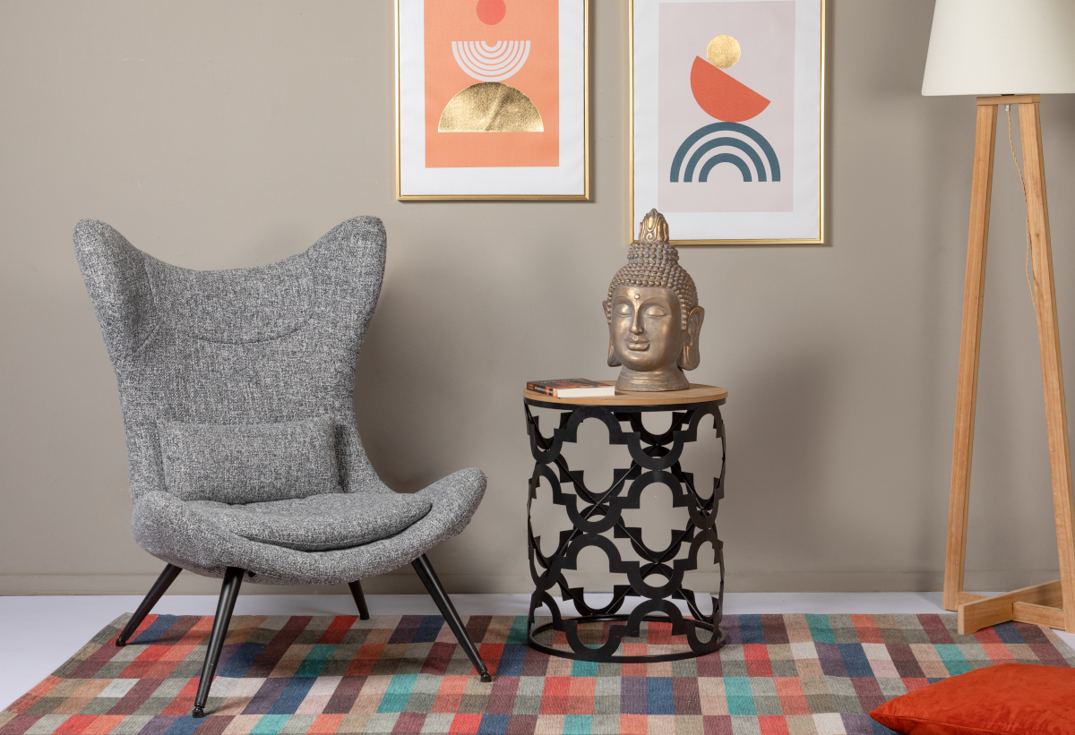 Απεικονίζεται το κάθισμα της πολυθρόνας και δίπλα το τραπεζάκι, τοποθετημένα σε ένα σαλόνι.