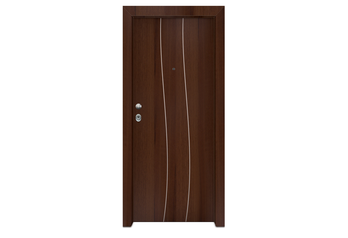 Πόρτα Ασφαλείας Standard με Σχέδιο KT-213, 100X205cm Δεξιά Καρυδιά με Κάσωμα