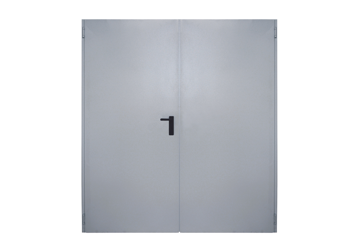 Πόρτα 2φυλλη μεταλλική γενικής χρήσης σε γκρι ανοικτή απόχρωση.