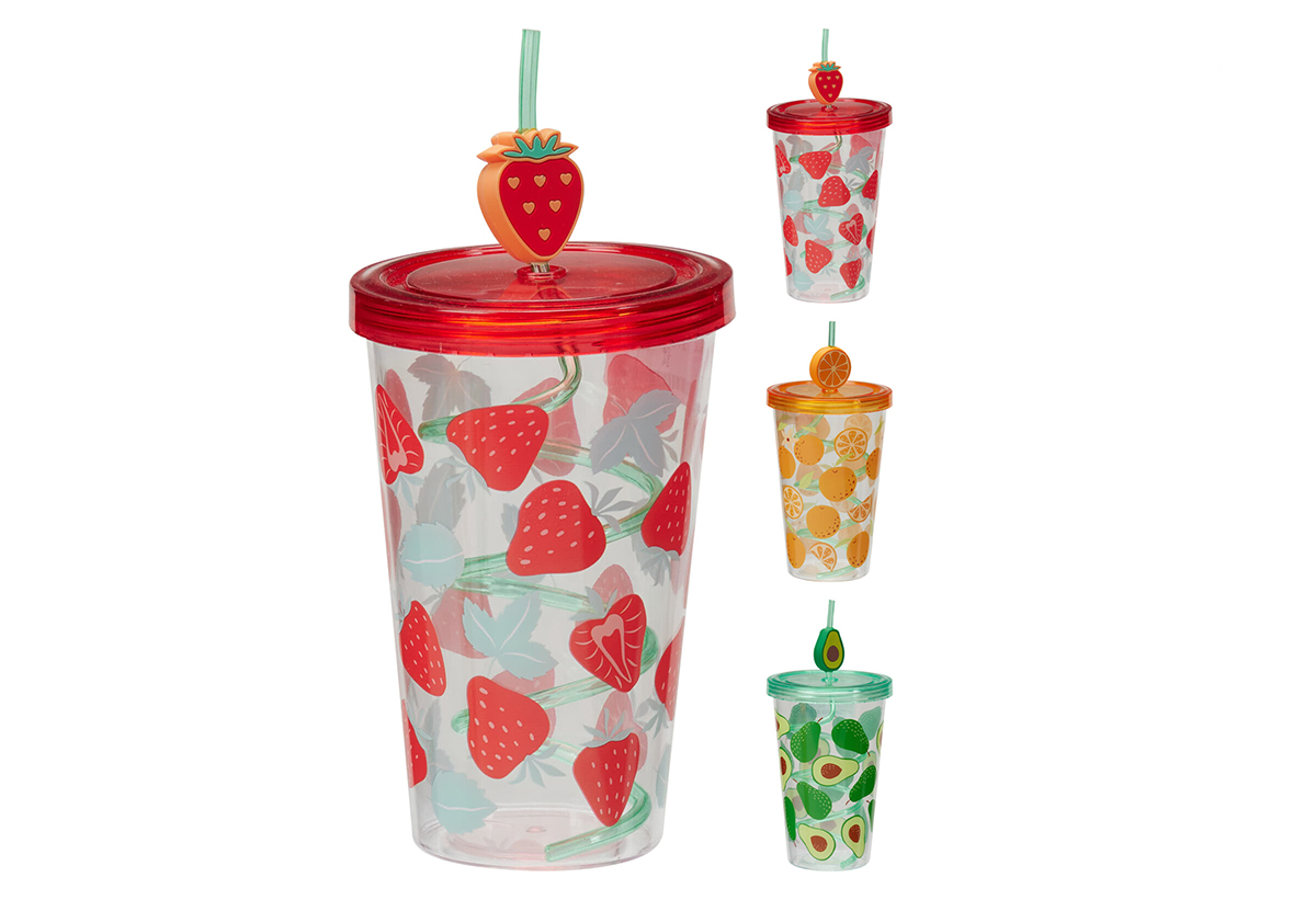 Ποτήρι με Καλαμάκι 600ml σε 3 Σχέδια