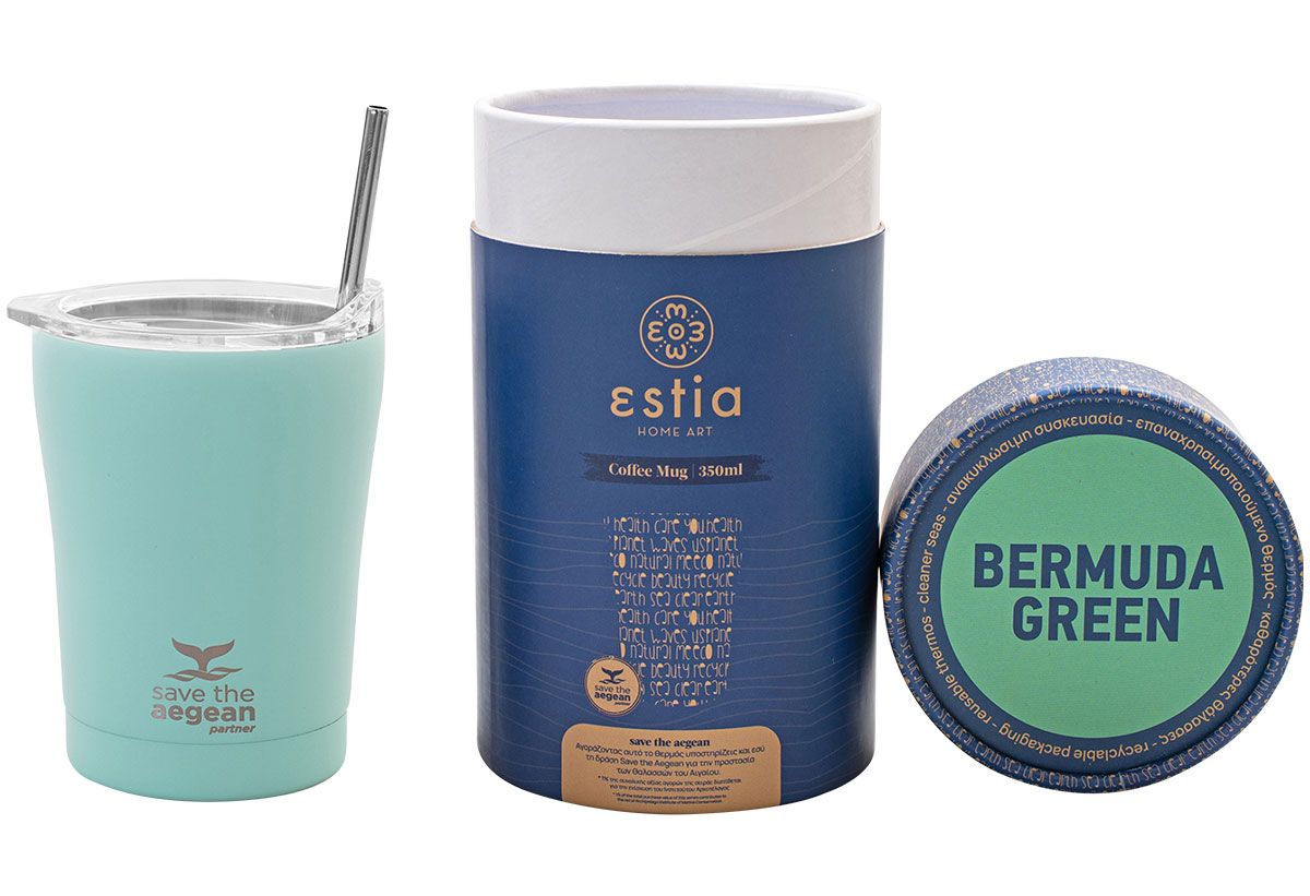 Ποτήρι Θερμός Estia Home Art Save the Aegean 350ml Bermuda Green