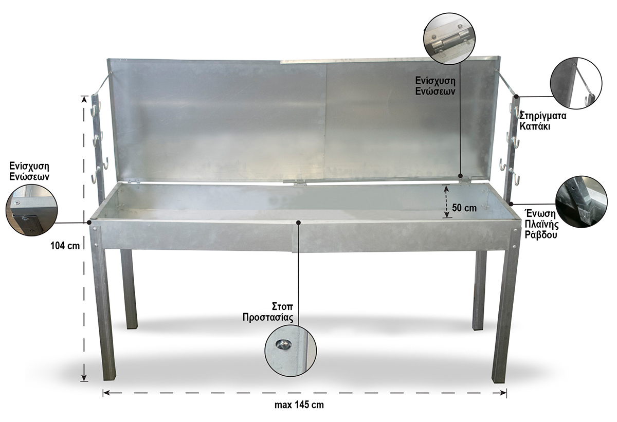 Ψησταριά Κάρβουνου Nattera 145x50cm με Καπάκι