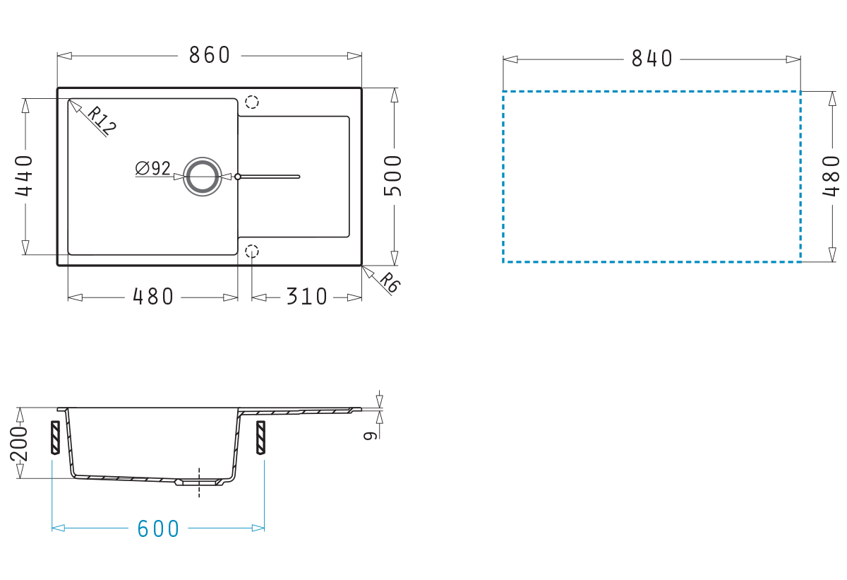 Pyramis Ithaka PLus Pyragranite Volcano Ένθετος Νεροχύτης M86xΠ50cm