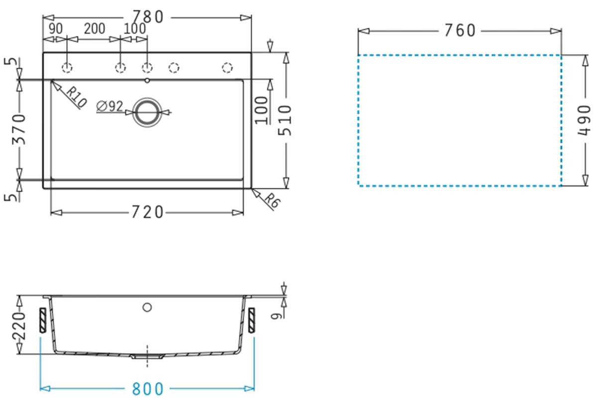 Pyramis Ithaka Pyragranite Iron Grey Ένθετος Νεροχύτης M78xΠ51cm