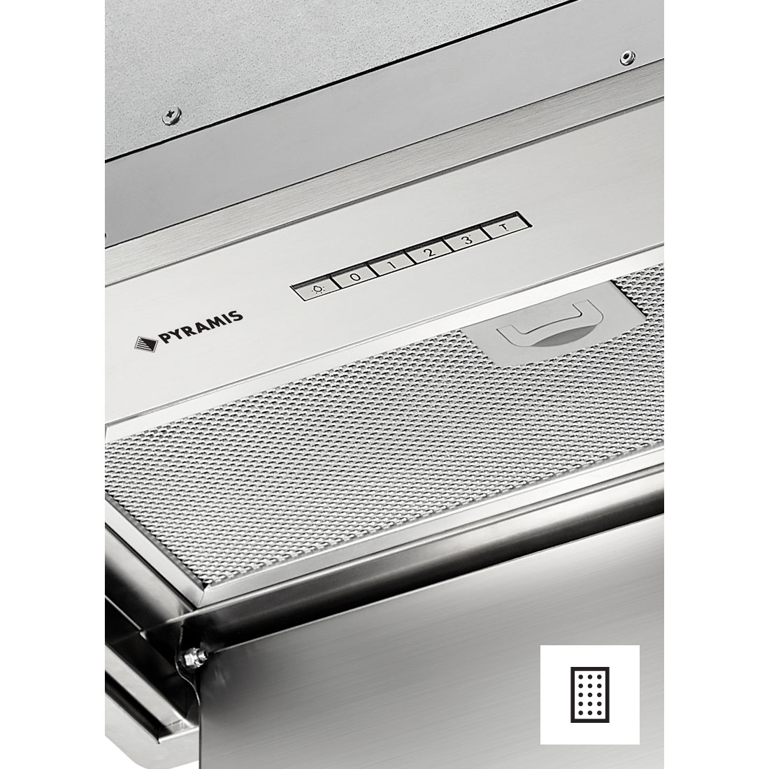 Ο μηχανισμός απορρόφησης PYRAMIS ταιριάζει απόλυτα στο στυλ και τις αναγκες της κουζίνας σου, ενώ η ανοξείδωτη επιφάνεια κρατάει μακρυά τις δακτυλιές και τα σημάδια από την καθημερινή χρήση.