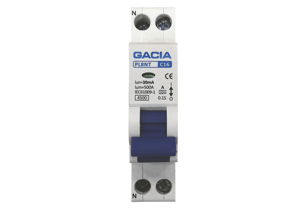 Ρελέ Gacia RCBO Διπολικό 16A 4.5kA 30mA 1P+N Type AC
