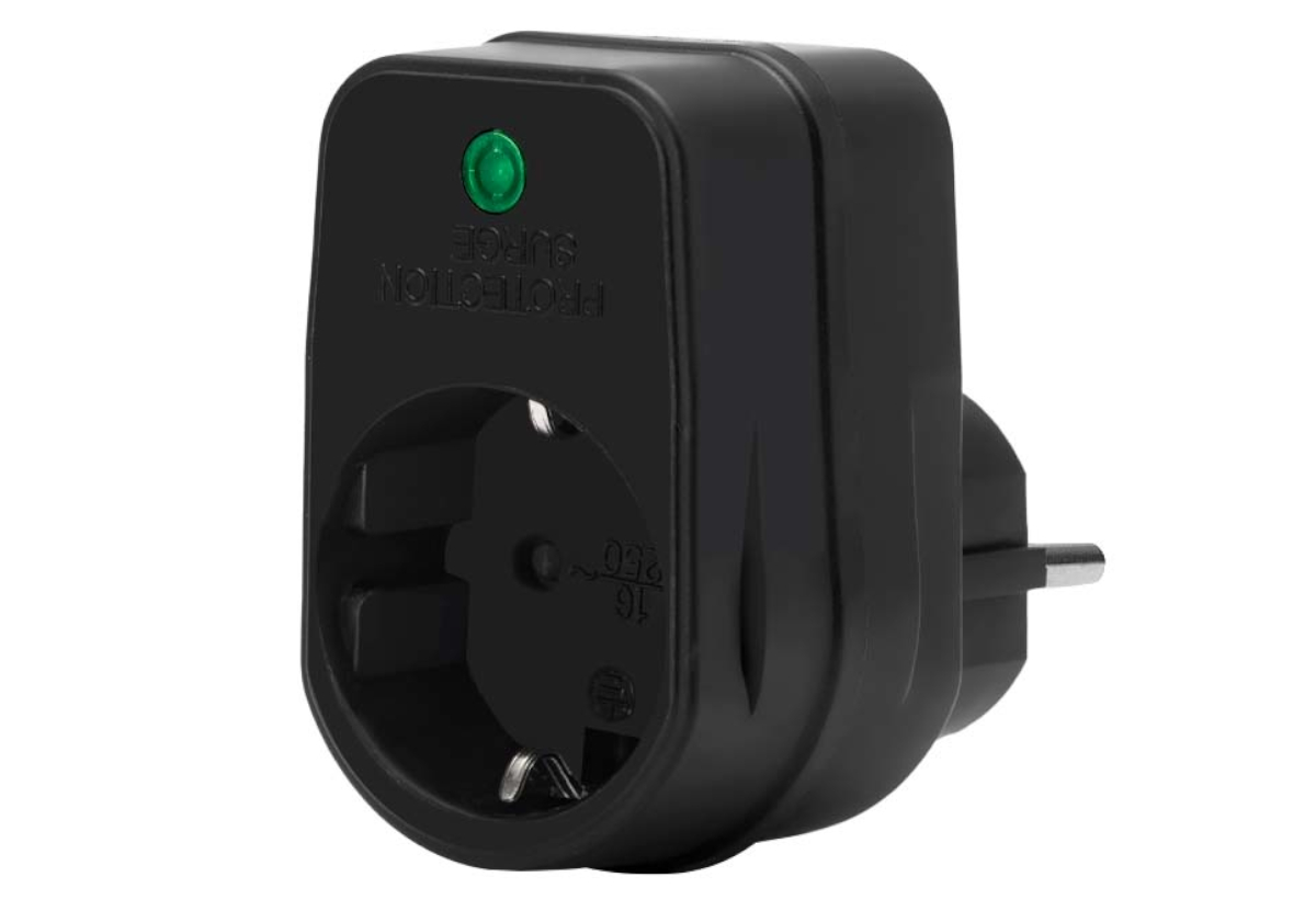 SAS Αντάπτορας με 1 Πρίζα Σούκο και Προστασία Υπέρτασης Μαύρος