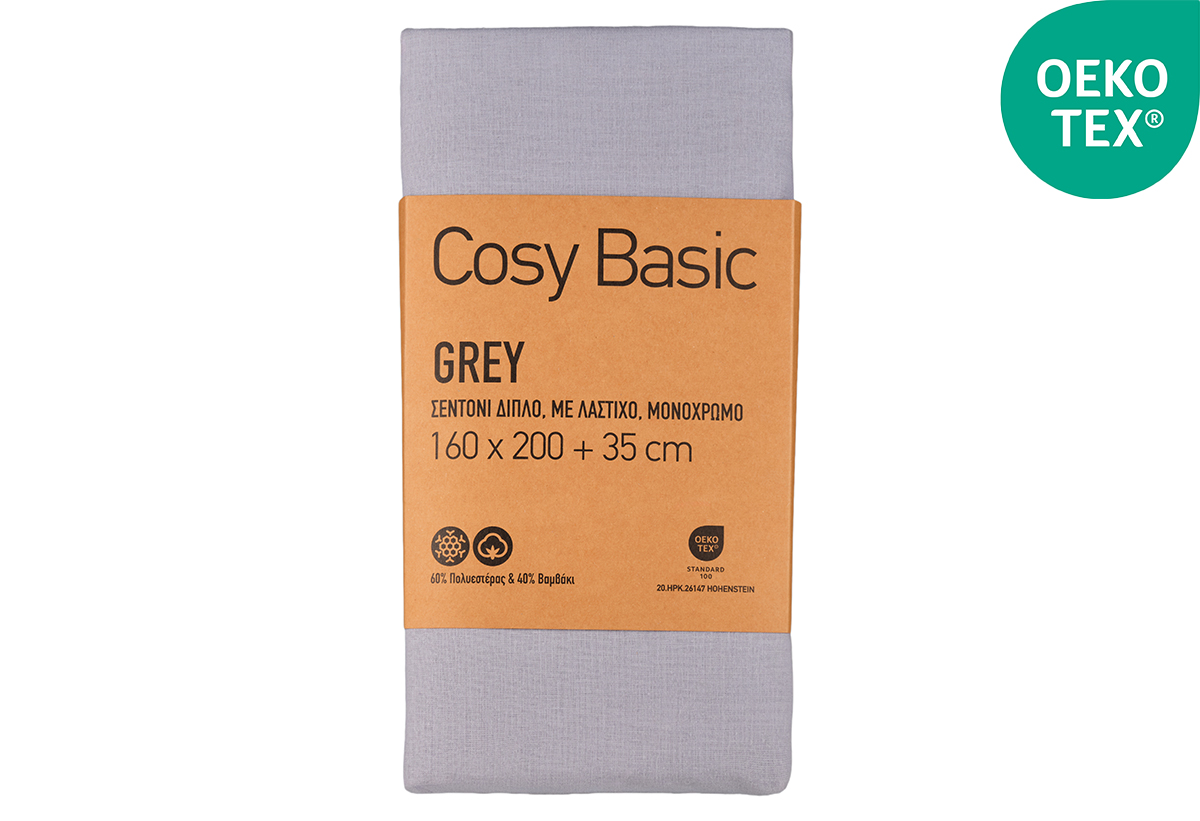 Σεντόνι Διπλό Ionion Cosy Basic Grey με Λάστιχο Μ200xΠ160xΥ35cm