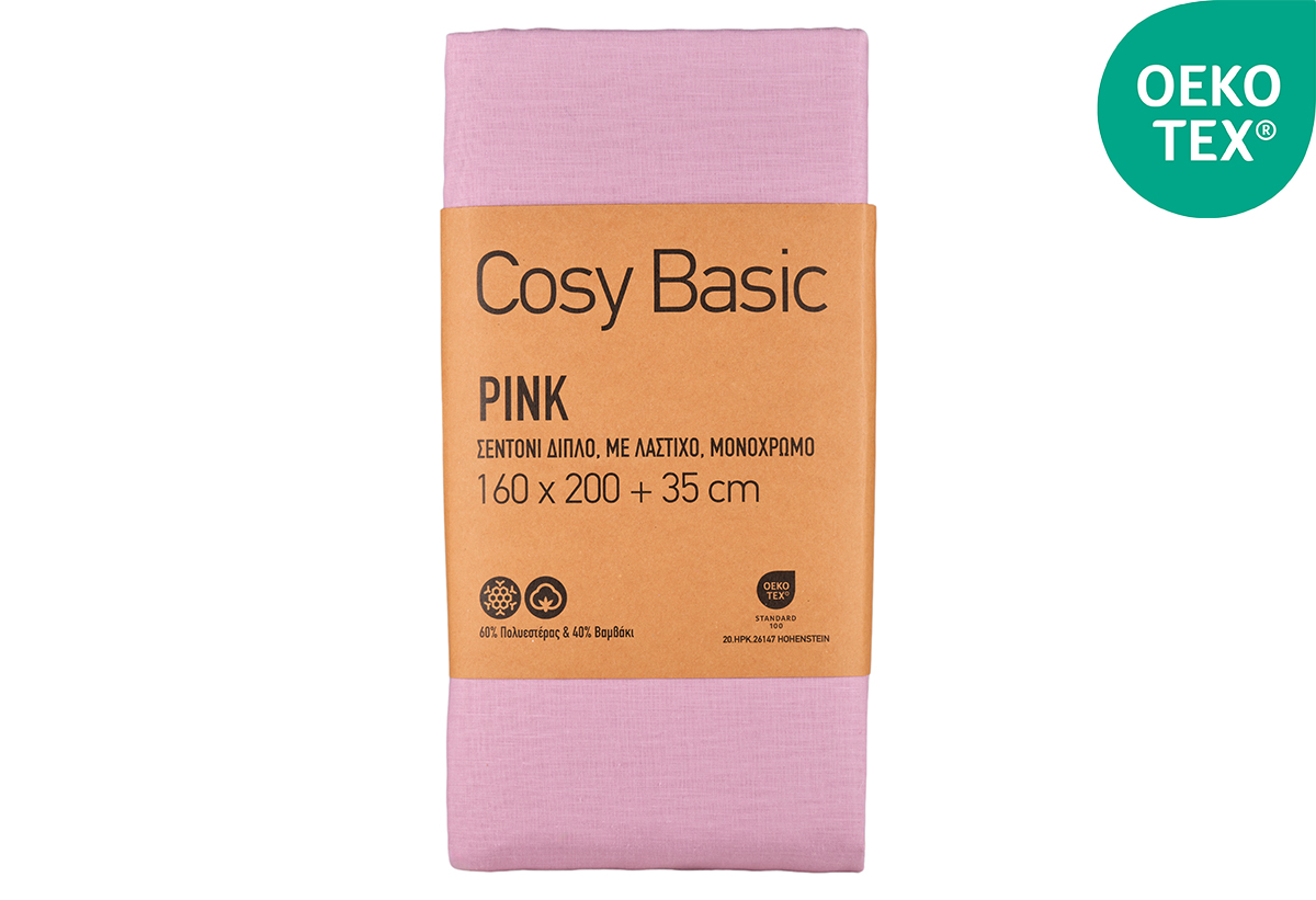 Σεντόνι Διπλό Ionion Cosy Basic Pink με Λάστιχο Μ200xΠ160xΥ35cm