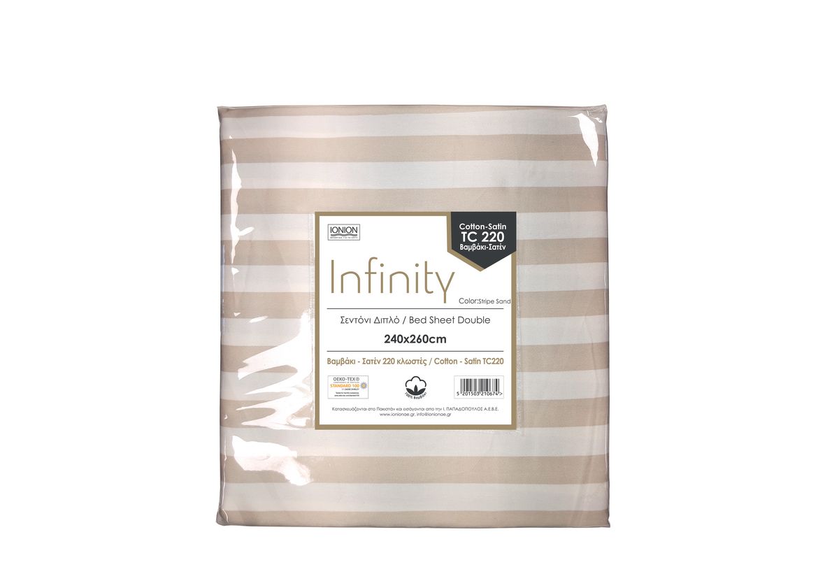 Σεντόνι Διπλό Ionion Infinity Stripe Sand 260x240cm