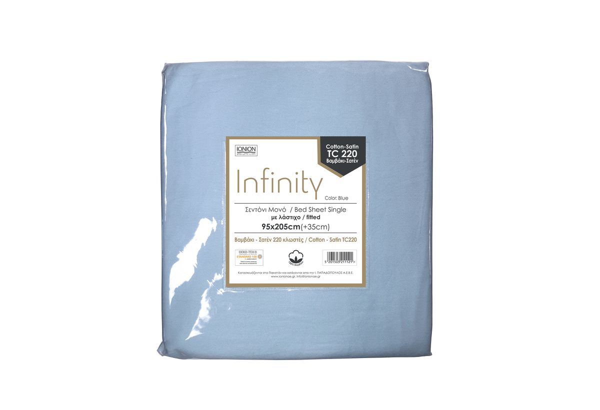 Σεντόνι βαμβακερό σατέν Infinity με λάστιχο μονό Μπλε