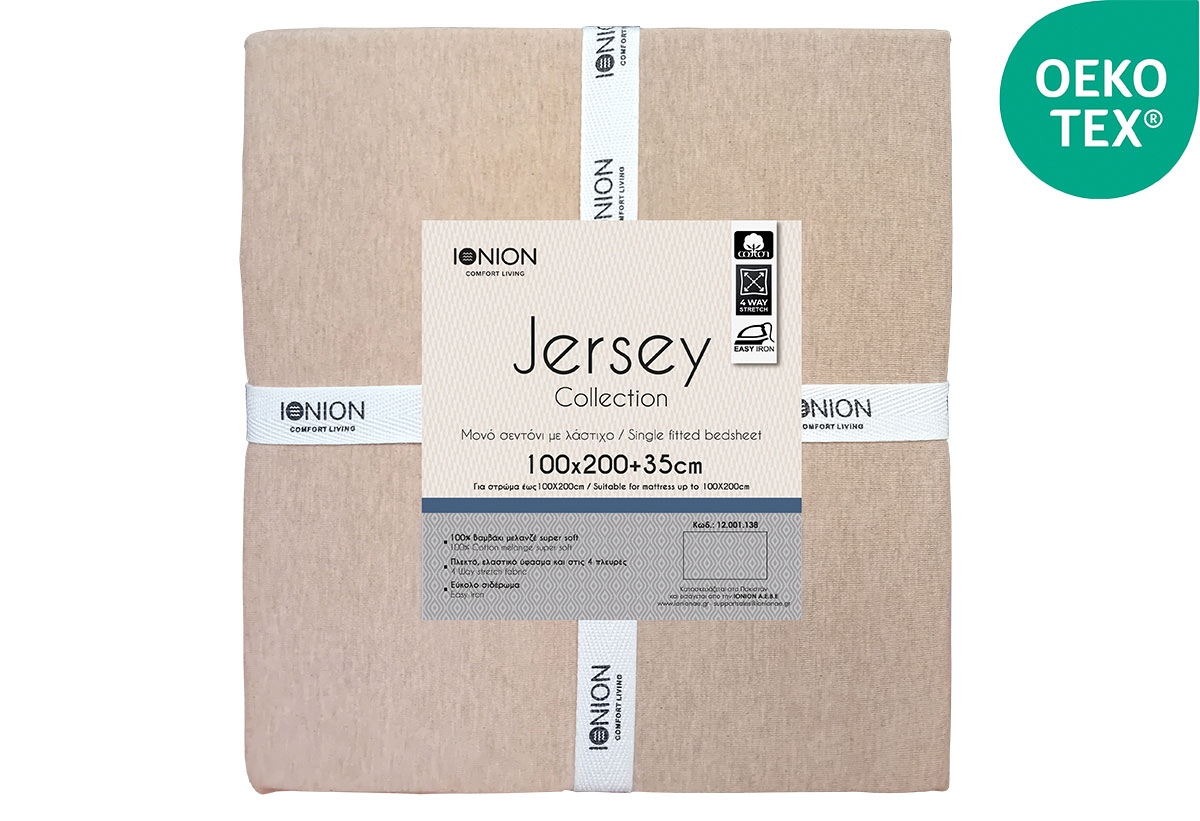 Σεντόνι Μονό Ionion Jersey Beige με Λάστιχο Μ200xΠ100xΥ35cm