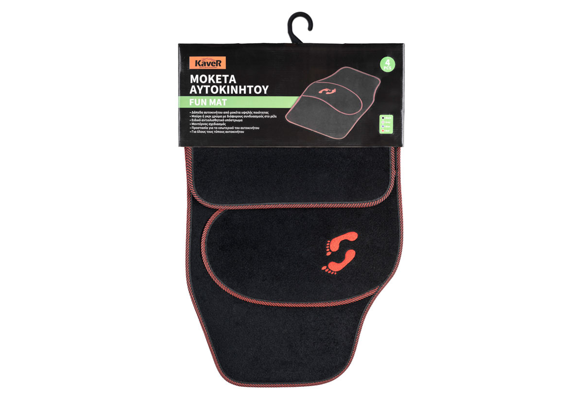 Σετ Δάπεδα Αυτοκινήτου Kaver Fun Mat Full Set Μαύρο/Κόκκινο 4τμχ