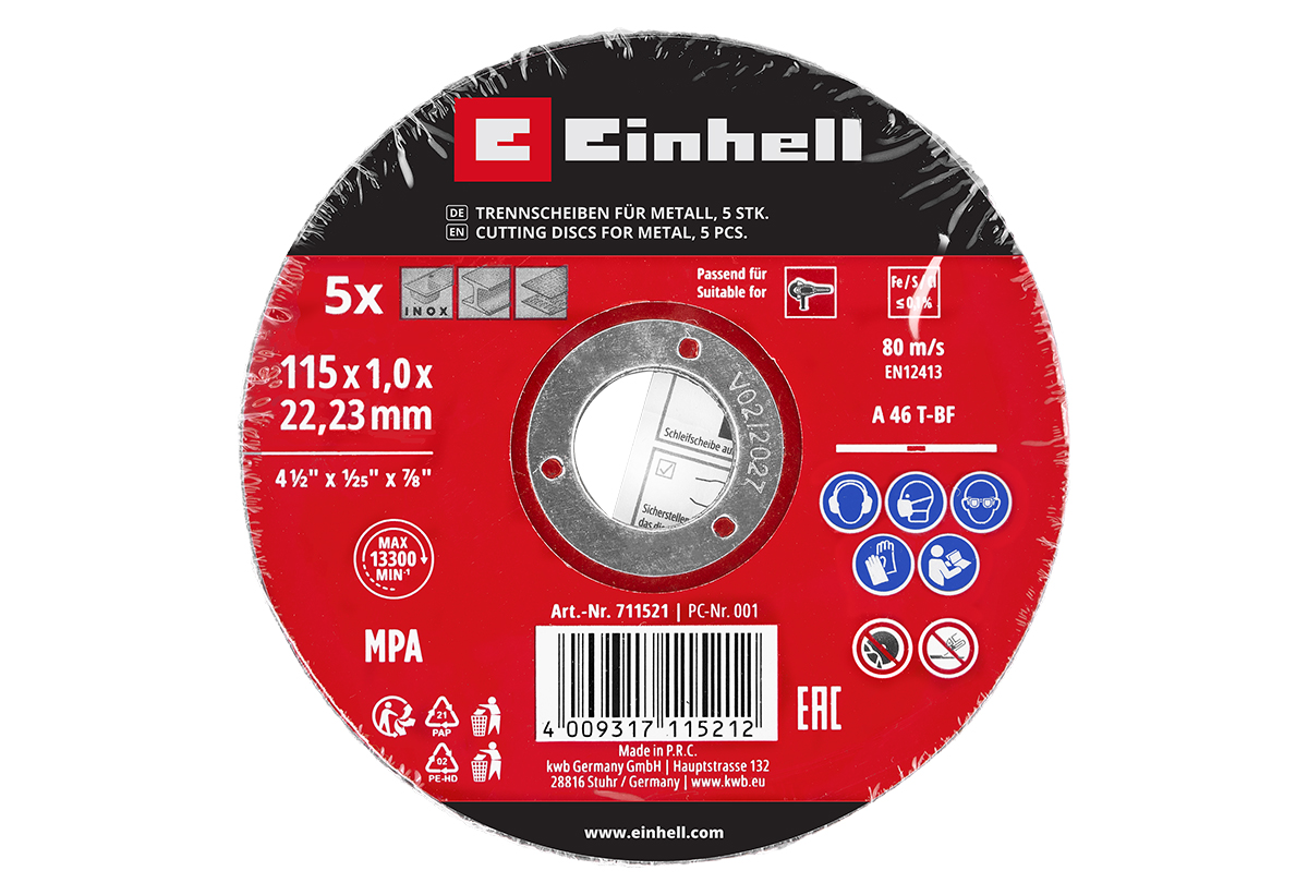 Σετ Δίσκοι Κοπής Μετάλλων KWB 115x1mm 5τμχ