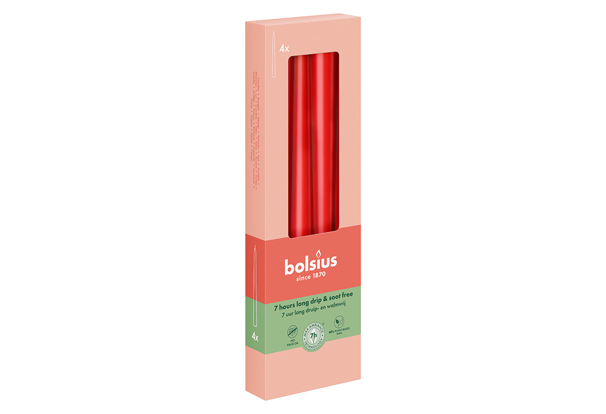 Σετ Κερί Κηροπηγίου Bolsius Delicate Red 24.5cm 4τμχ