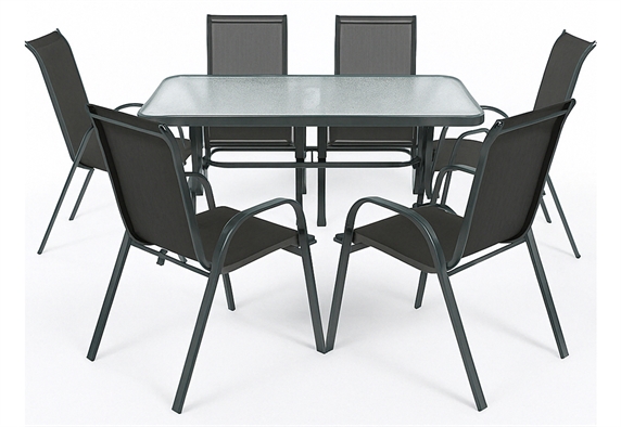Αναβάθμισε τον εξωτερικό σου χώρο με το κομψό τραπέζι κήπου Homefit Fiji. Το μοντέρνο design του, προσφέρει μια elegant αισθητική στον κήπο ή τη βεράντα σου. Ιδανικό για οικογενειακές στιγμές και συγκεντρώσεις με φίλους, το τραπέζι αυτό συνδυάζει εξαιρετική σταθερότητα και ανθεκτικότητα χάρη στην στιβαρή κατασκευή του. Με διαστάσεις 150x90cm και ύψος 70cm, προσφέρει επαρκή χώρο, ακόμα και για δείπνο με τους αγαπημένους σου. Η γυάλινη επιφάνεια όχι μόνο προσδίδει μοντέρνα κομψότητα, αλλά είναι και εύκολη στη συντήρηση. Τέλος, υπάρχει υποδοχή στο κέντρο της γυάλινης επιφάνειας, για να τοποθετήσεις ομπρέλα για σκίαση, δίνοντάς σου τη δυνατότητα να καθίσεις σε  αυτό, ακόμα και τις πιο ζεστές ημέρες.